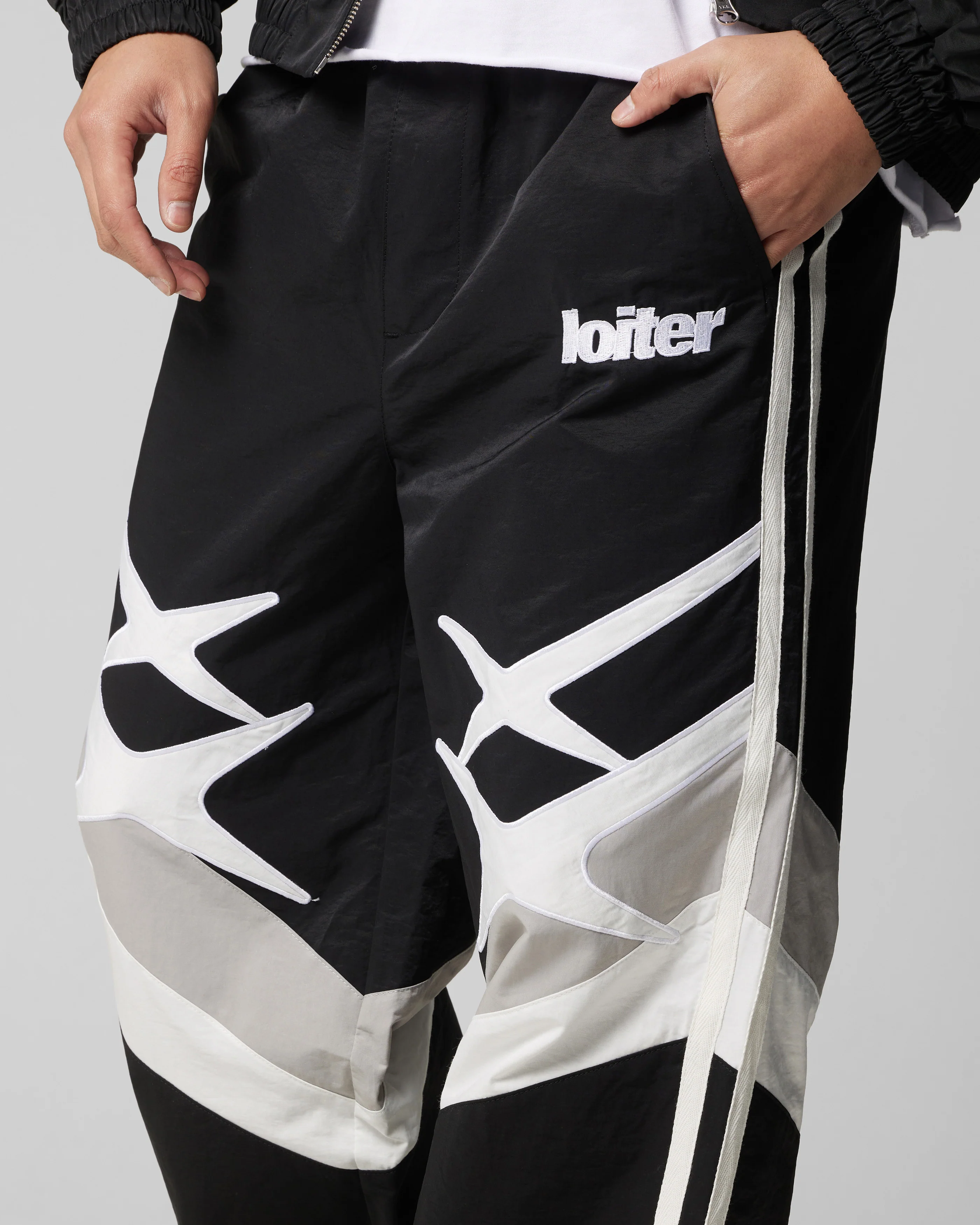 Luxe meets streetwear in these epic track pants by Loiter. Boasting embroidered graphics complemented by contrast panels is sure to make a bold statement. The elasticated waist and adjustable toggles at the cuffs make sure you get the perfect fit every time. Designed with your comfort in mind, this pair is sure to be the trusty addition to your wardrobe. Cop yours today at Loiter.