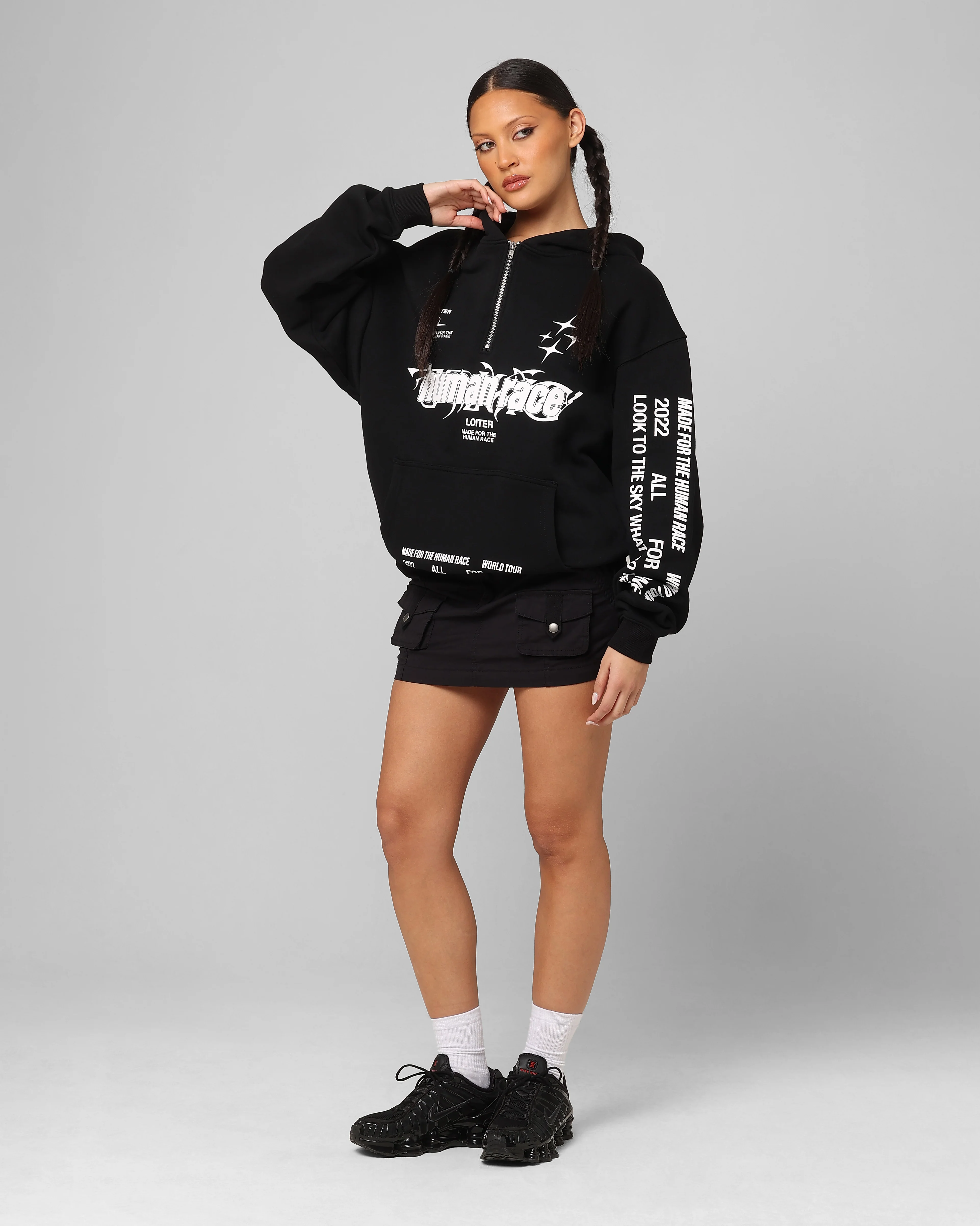 Loiter's latest drop at Loiter is coming in with a bang! This hoodie features printed graphics on the front, back, sleeves and hood that are sure to heat up your winter 'fits, a kangaroo pocket for all your essentials and a 1/4 zip close so you can choose your perfect fit. Cop yours today at Loiter.